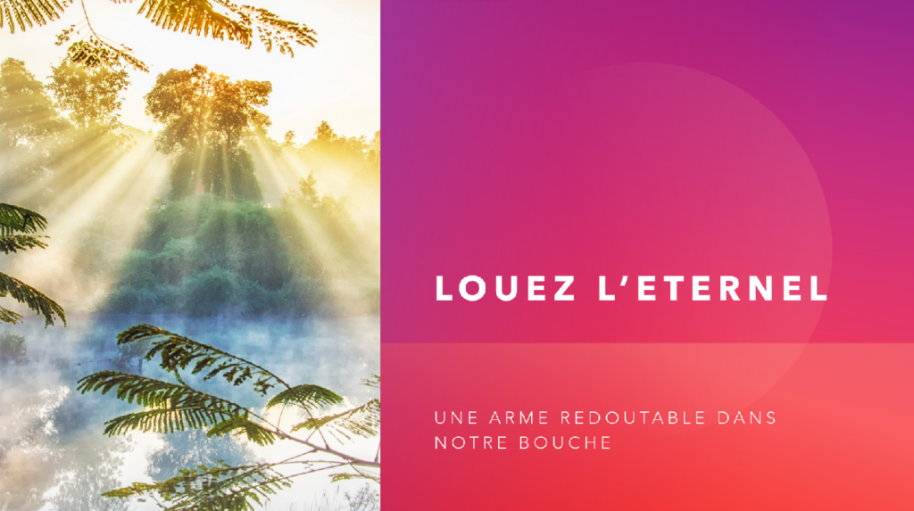 Je vous assure, quand nous louons l’Éternel, nous pouvons ressentir comme une sorte de délivrance, nous sommes comme dans une sphère d’onction, pouvez-vous la ressentir ?